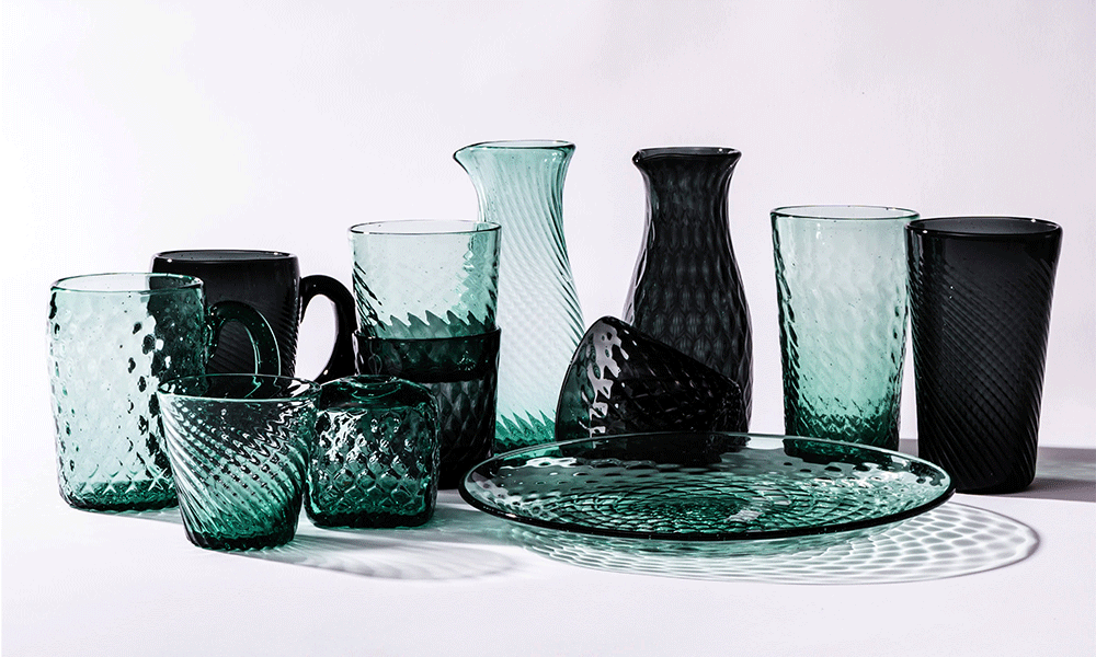 madoシリーズは、琉球ガラスの伝統技法を受け継ぎながら、日常にそっと寄り添う美しい2つの模様を展開しています。