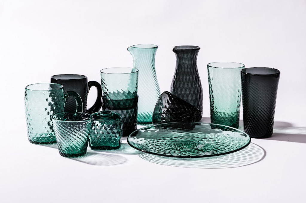 「mado」シリーズは、廃車となった車の窓ガラスを粉砕・回収し、琉球ガラスの職人の手によって命を吹き込まれたサステナブルなガラス食器シリーズです。