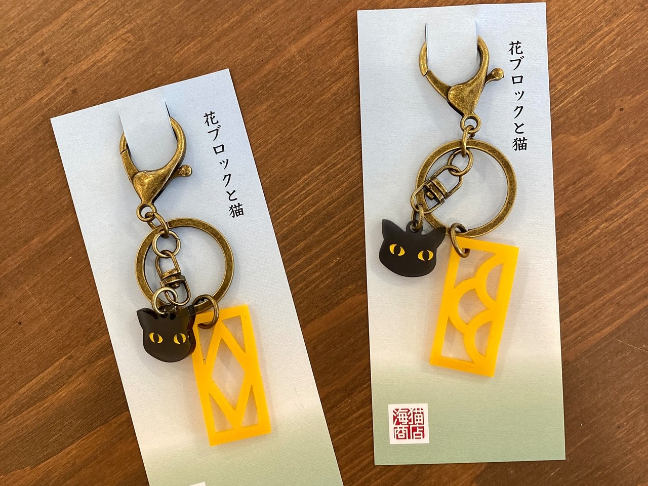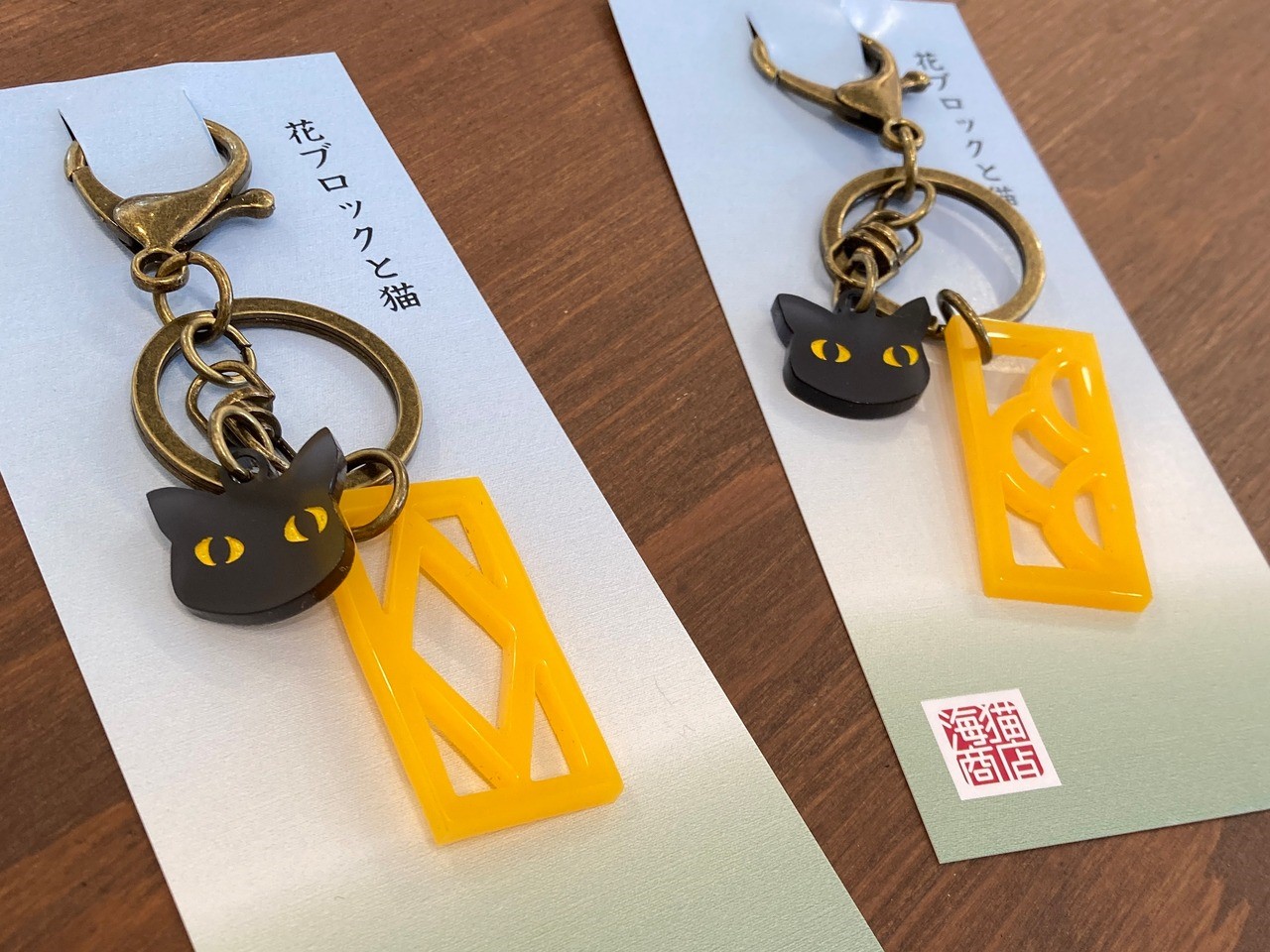 沖縄生まれのかわいい花ブロックと猫が、手のひらサイズのキーホルダーになりました。
