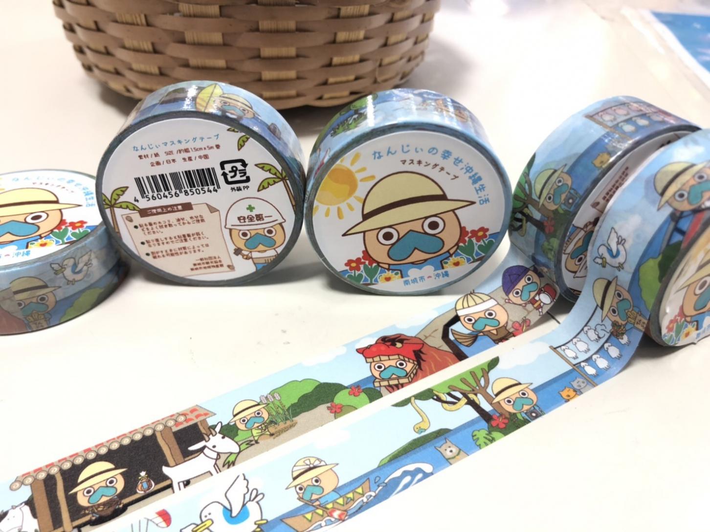 南城市の観光スポットを中心にデザインされており、各所になんじぃが楽しんでる姿が見られる可愛いマスキングテープです。