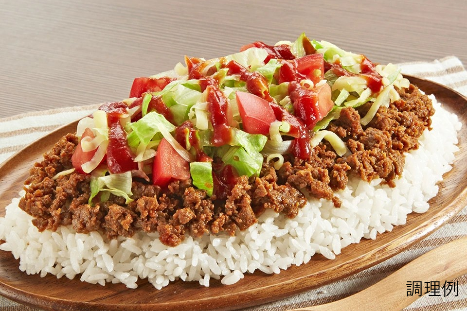 原材料 [タコスミート]食肉(牛肉、豚肉)、野菜(たまねぎ、にんにく)、しょうゆ、香辛料、砂糖、顆粒だし、食塩、調味料(アミノ酸等)、(原材料の一部に乳、小麦を含む)