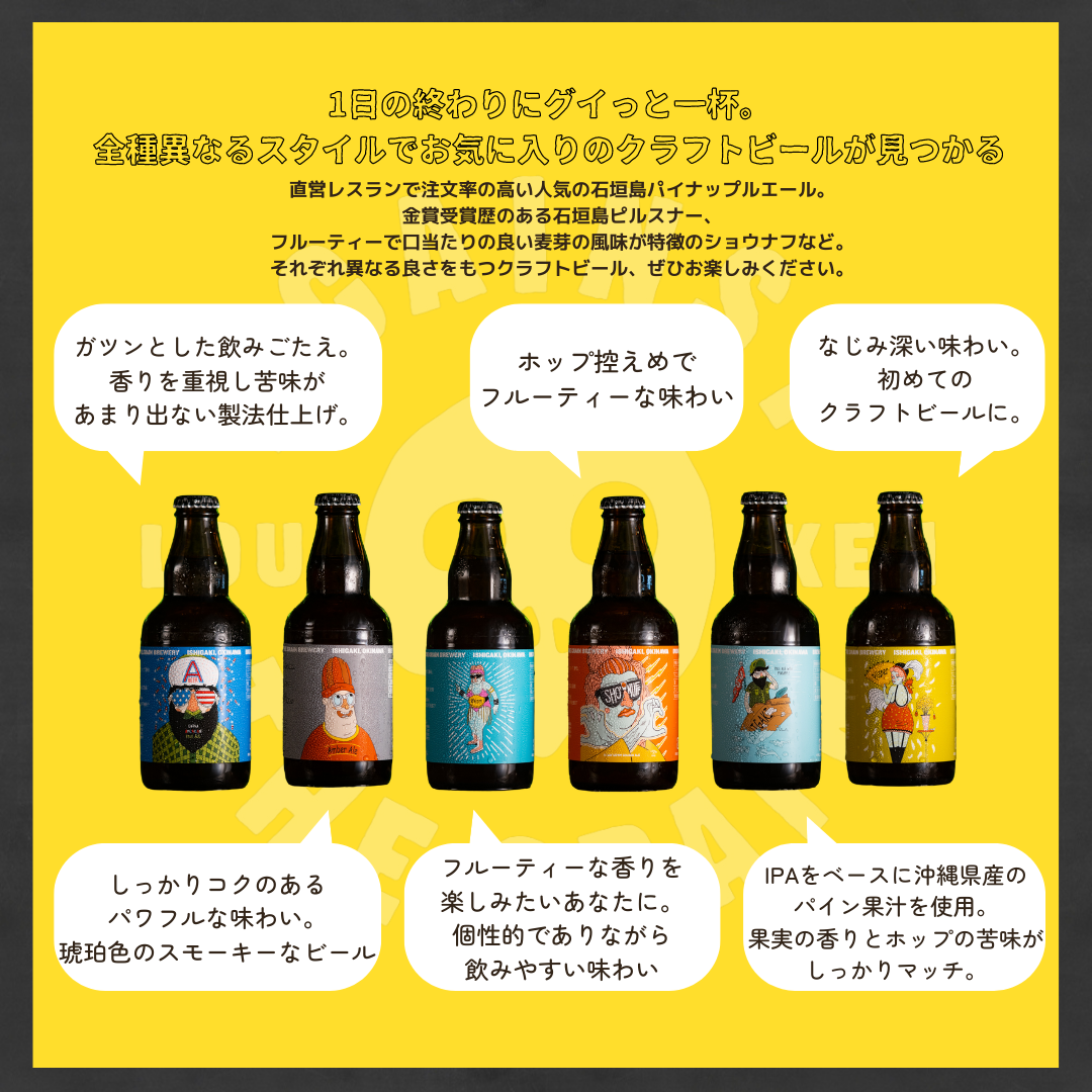 石垣島ビール工房で定番人気のクラフトビール6種類をセットにしてお届けいたします。