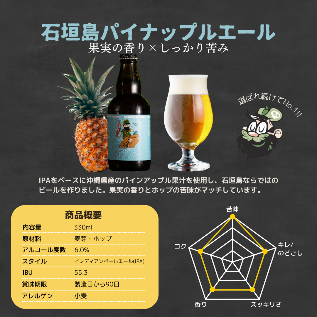 【石垣島パイナップルエール】麦芽・パインアップル果汁・ホップ・酵母