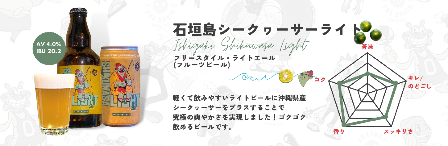 【石垣島シークヮーサーライト】麦芽・シークヮーサー果汁・ホップ・酵母