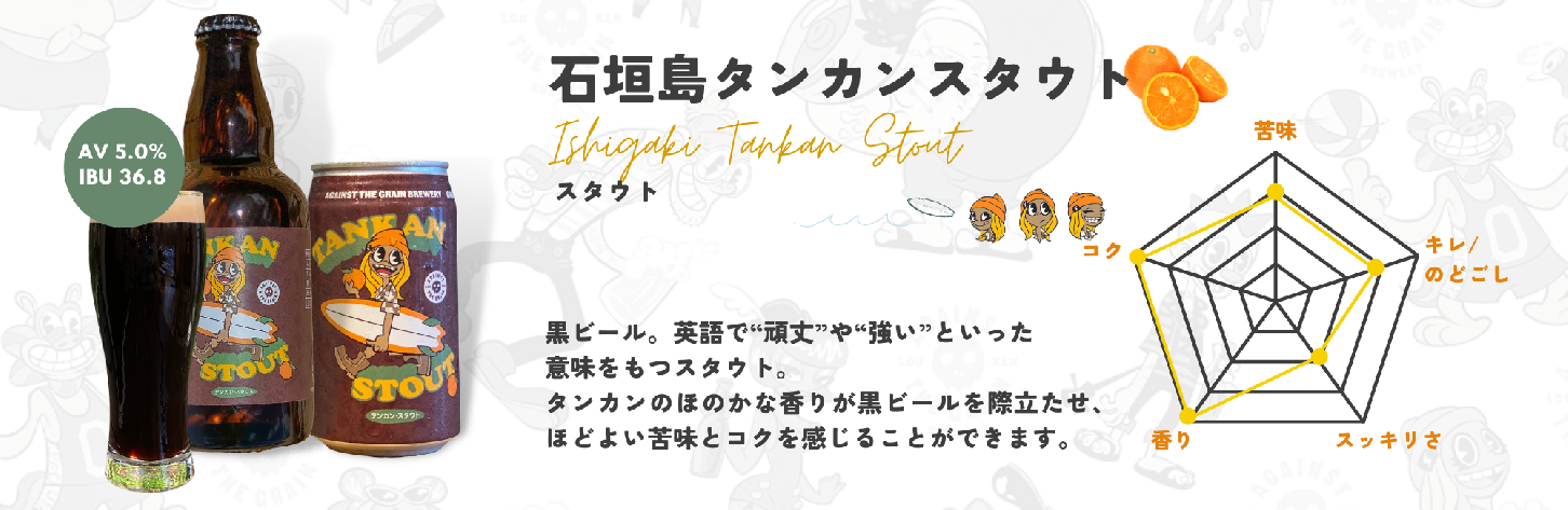 【石垣島タンカンスタウト】麦芽・タンカン果汁・ホップ・酵母