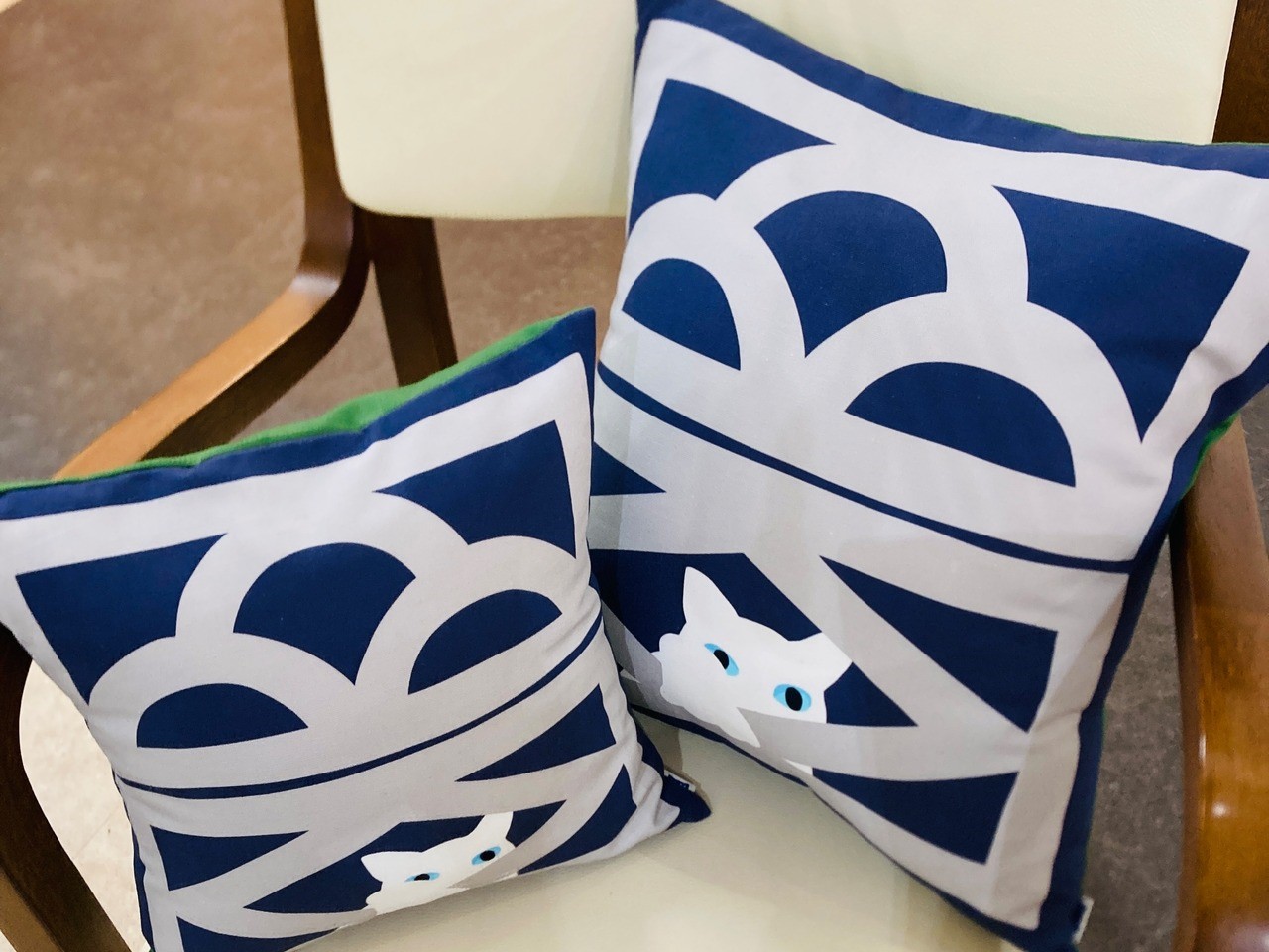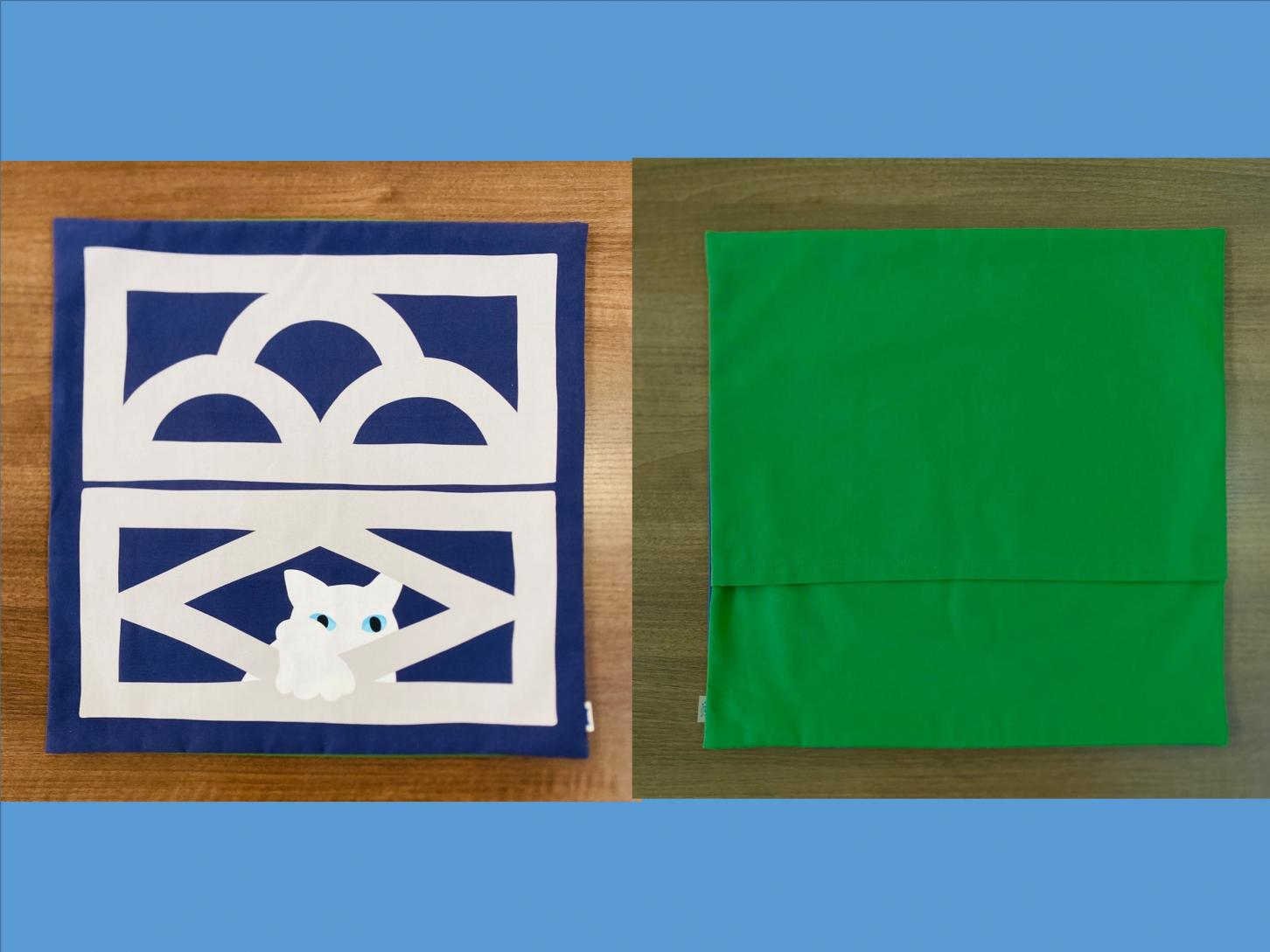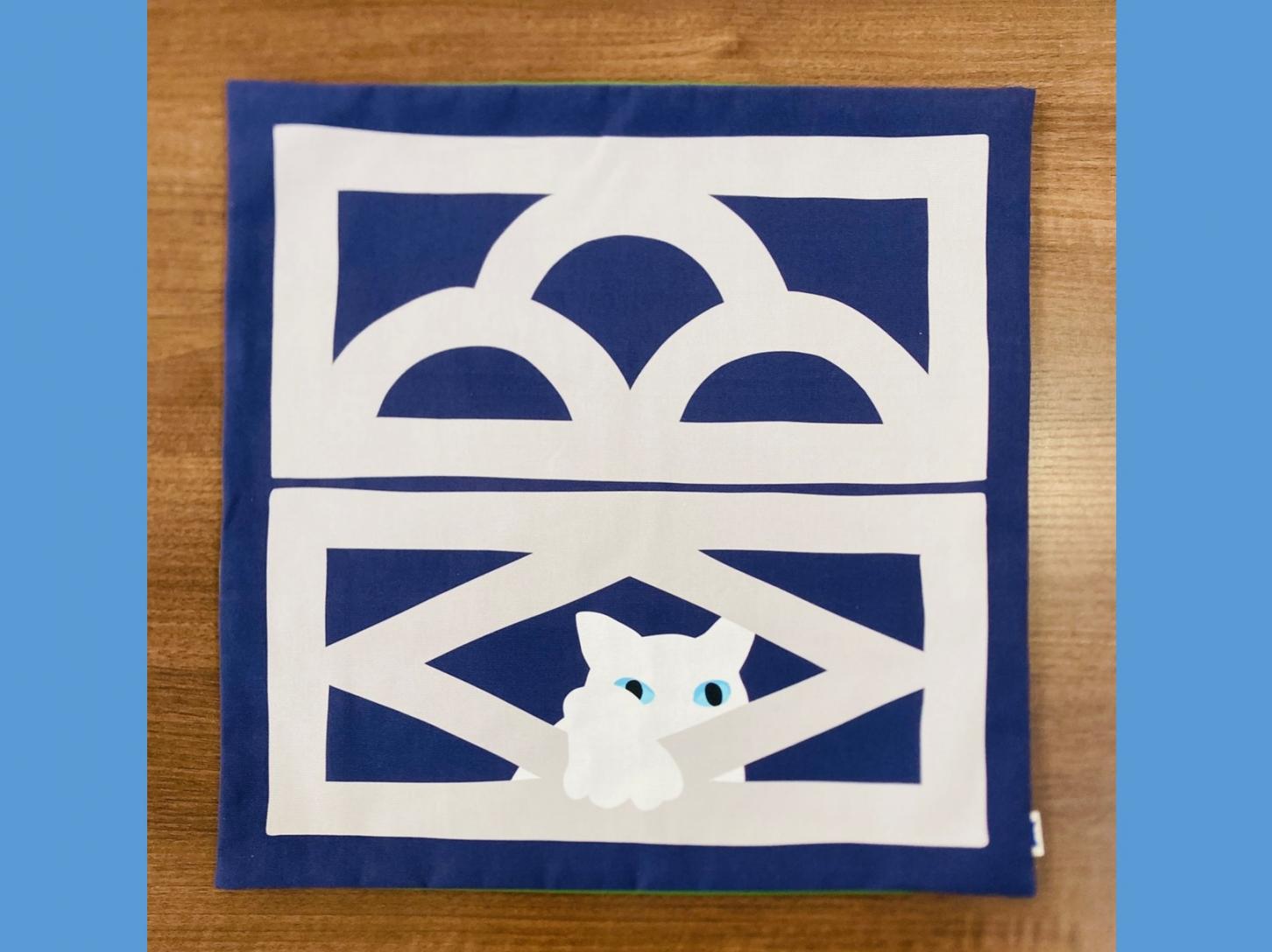 海猫商店の代表作、『花ブロックと猫』がクッションカバーになりました!