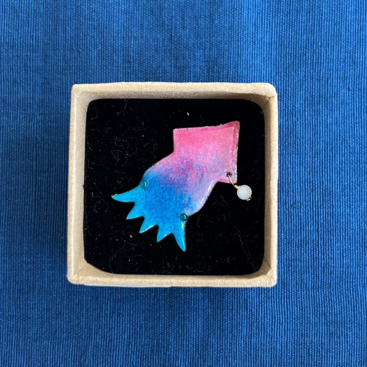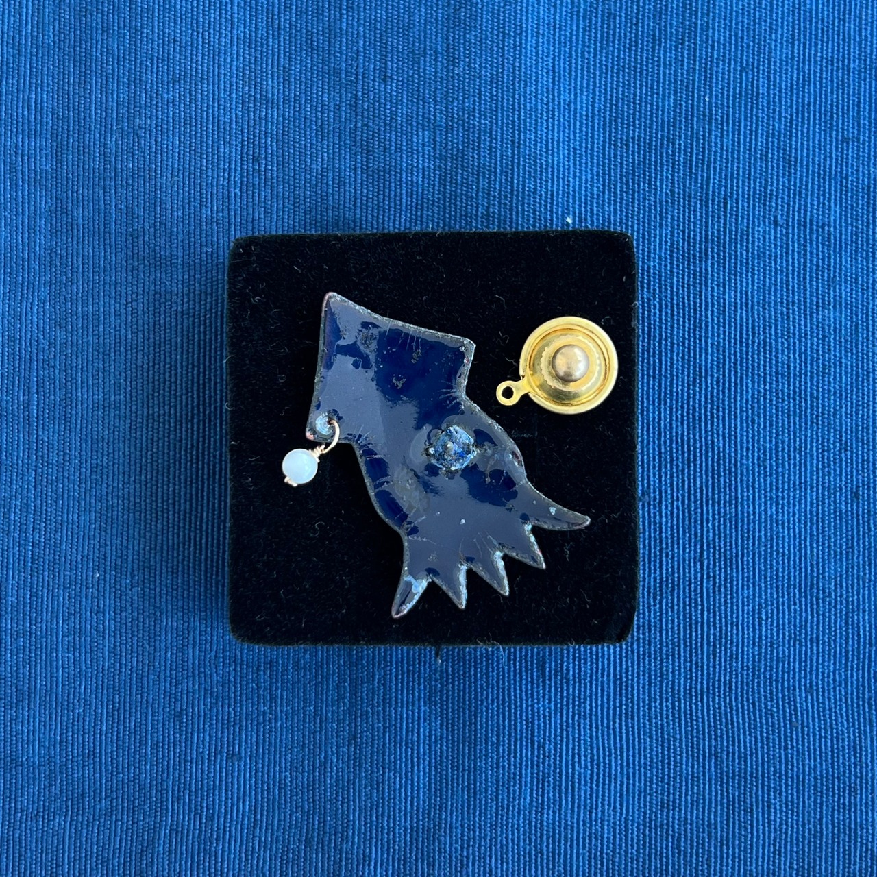 このブローチは、水の中でのイカの姿からインスパイアを受けて製作しました。