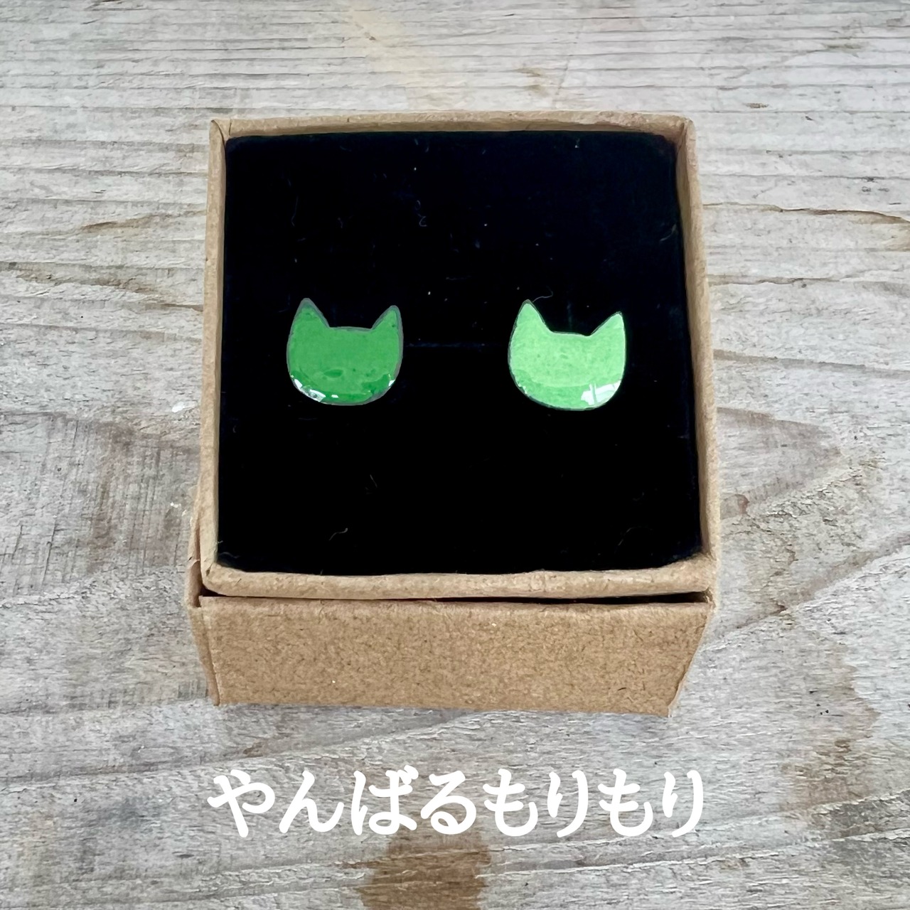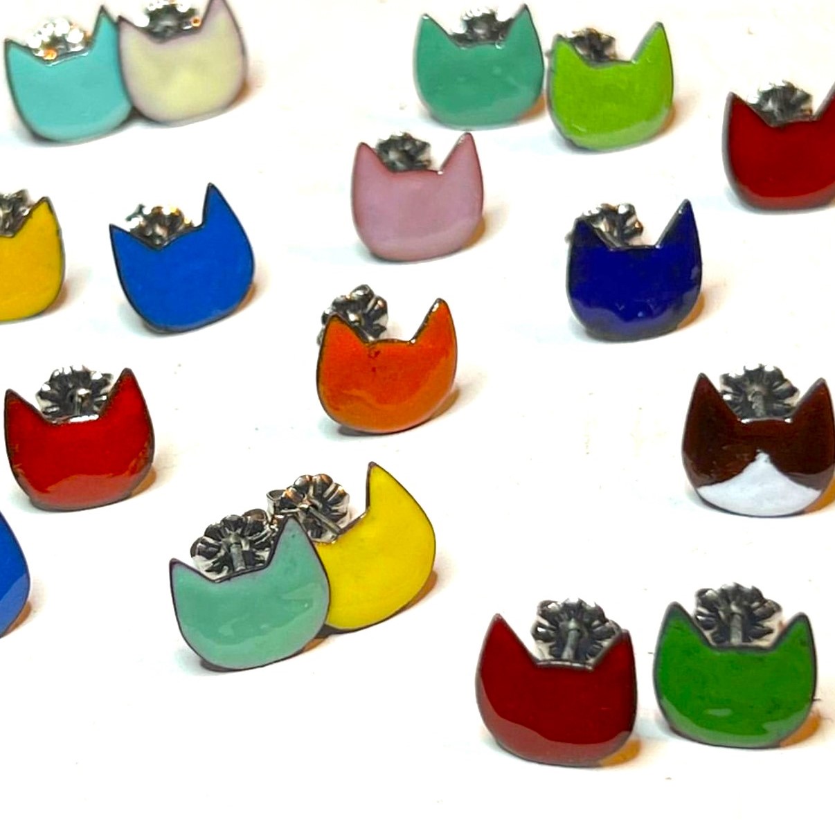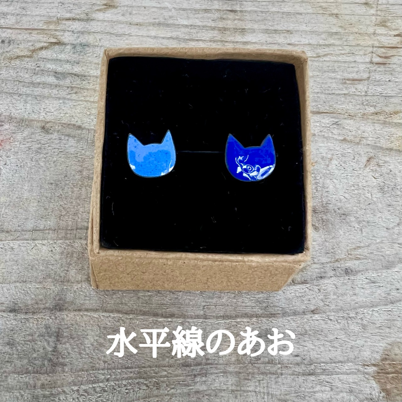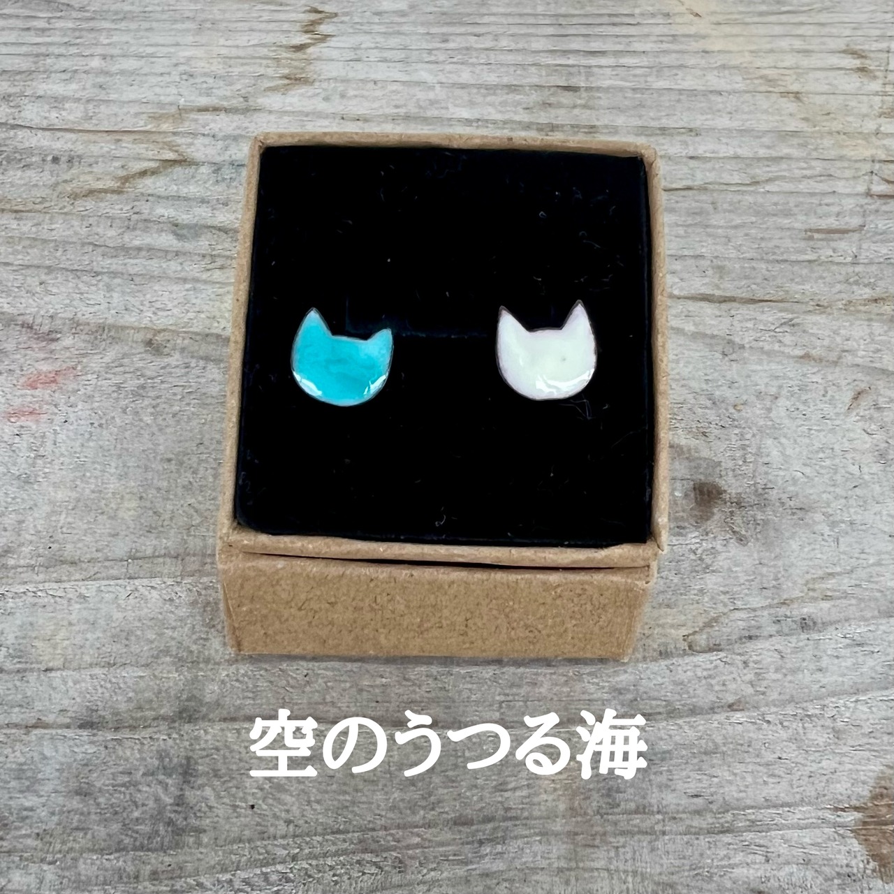 ガラスの鮮やかな色が映えるvitreous enamel (七宝焼)の小さなねこのピアス。