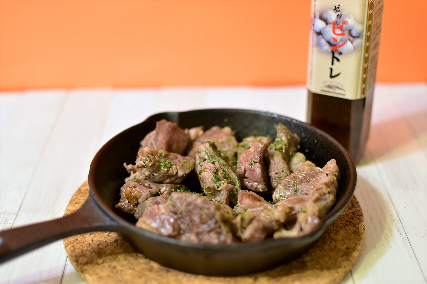 ドレッシングの素材には、ニンニク、ショウガ、玉ネギ、青ジソなど、パワーのつく素材がふんだんに使われており、美味しくスタミナのつくゼッピンドレッシングです。