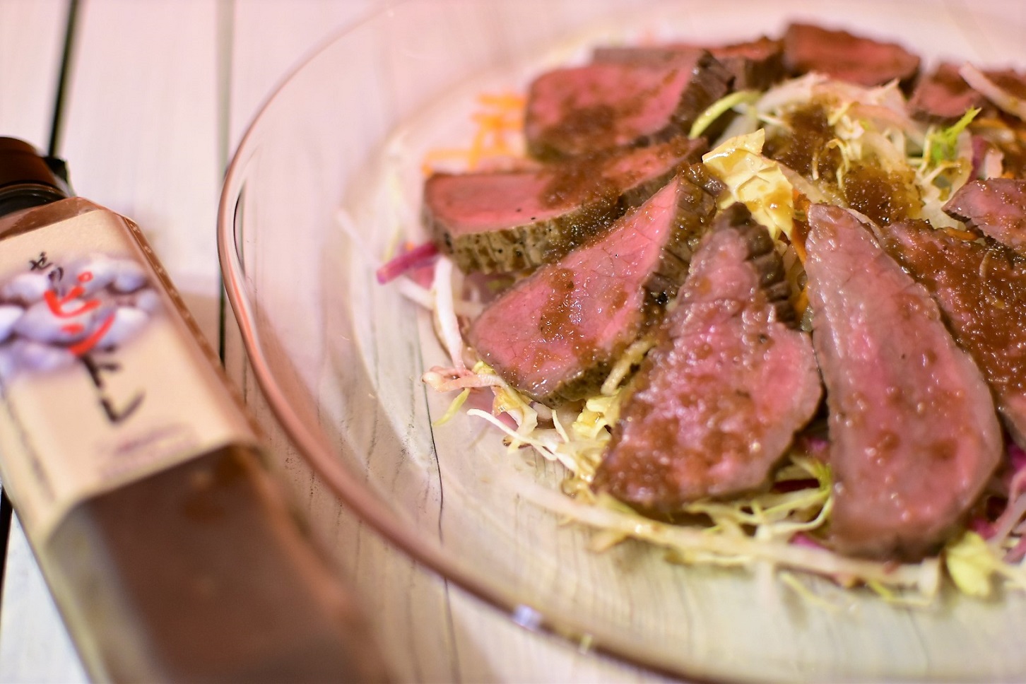 ニンニク、ショウガ、玉ネギ、青ジソが入っているので、ドレッシングにお肉を漬け込むといった使い方もできます。