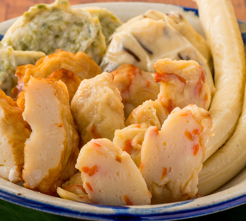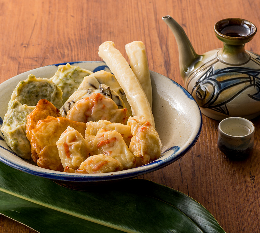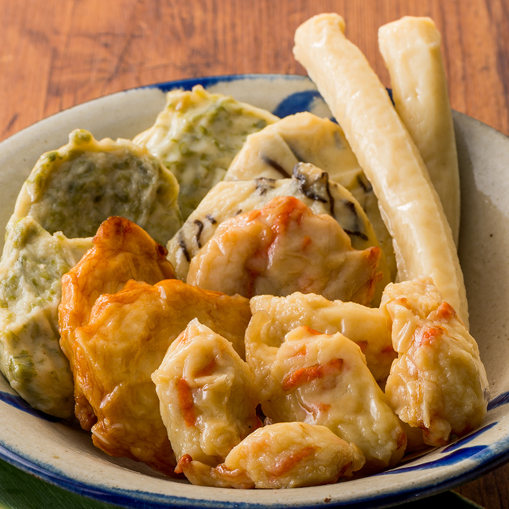 - 棒天(マルーグワァー)5本入×1袋、平天3枚入×4種(アーサ、もずく、にんにく、ゴボー)、タラシ揚げ×1袋