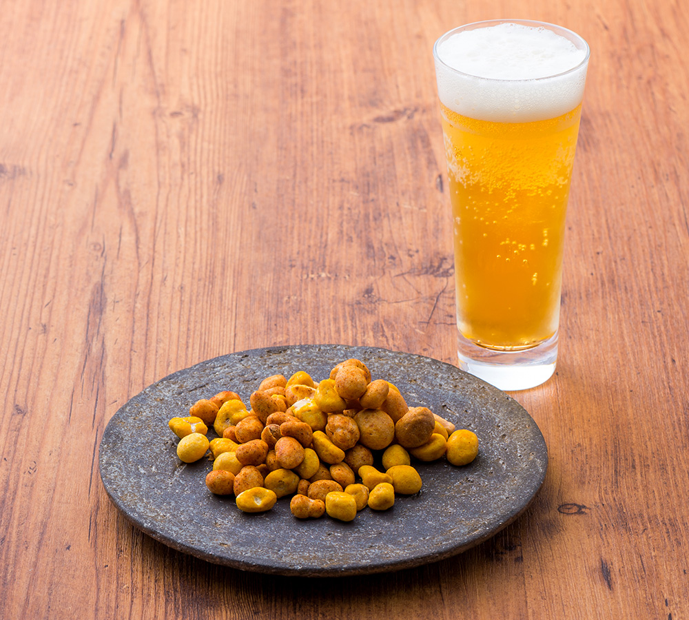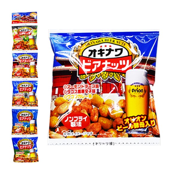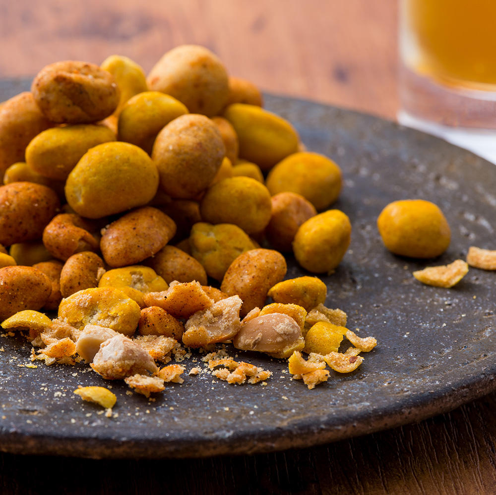 直火焙煎したピーナッツに沖縄地ビールの「オリオンビール」のビール酵母と3種類それぞれの味をブレンドした生地でコーティング!