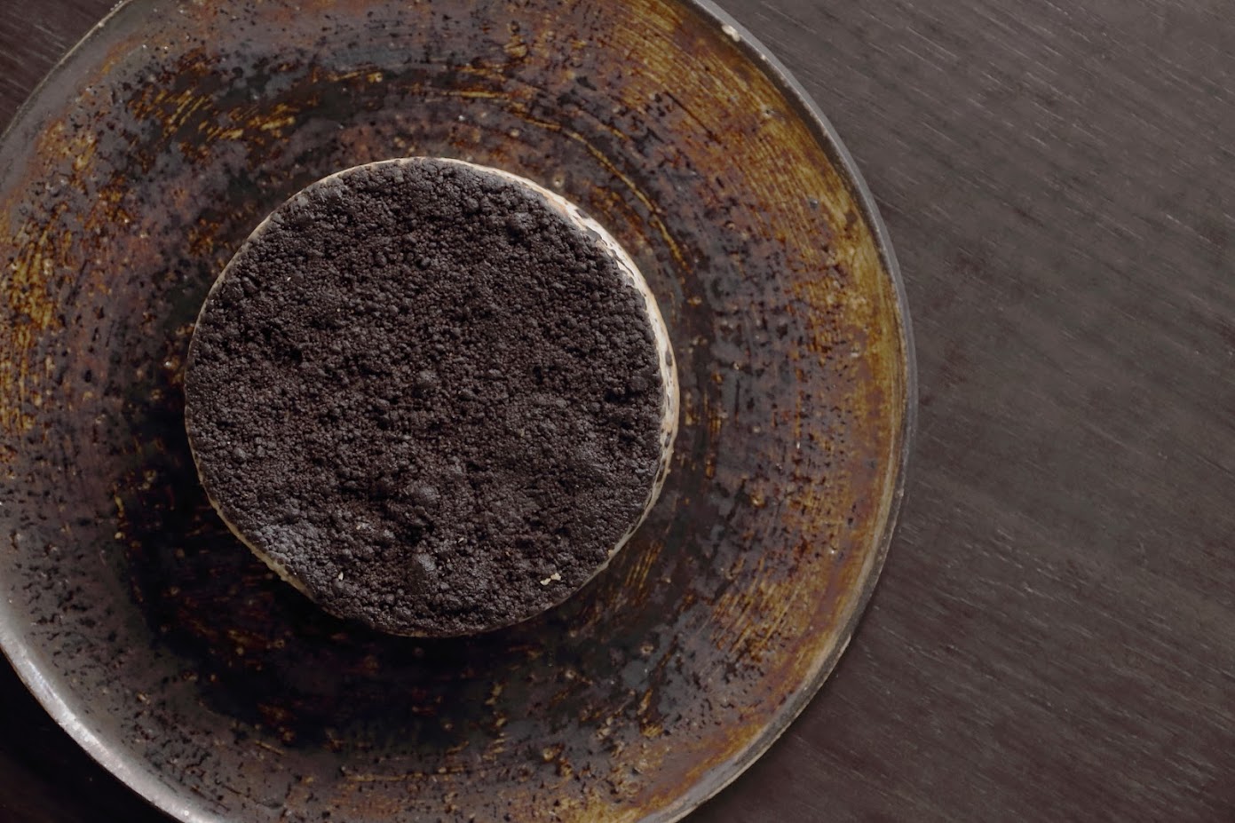 ブラックココアのビスケットを贅沢に、ケーキ生地の中、