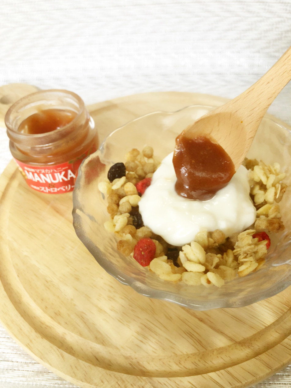 まずはそのままお召し上がりいただき、マヌカハニーの濃厚な味わいといちごの爽やかな香りと甘さをお楽しみください。