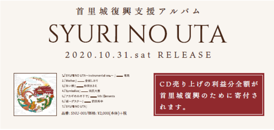 色々なところで「SYURI NO UTA」を中心に首里城復興への想いの輪が拡がってくれることを期待しています。
