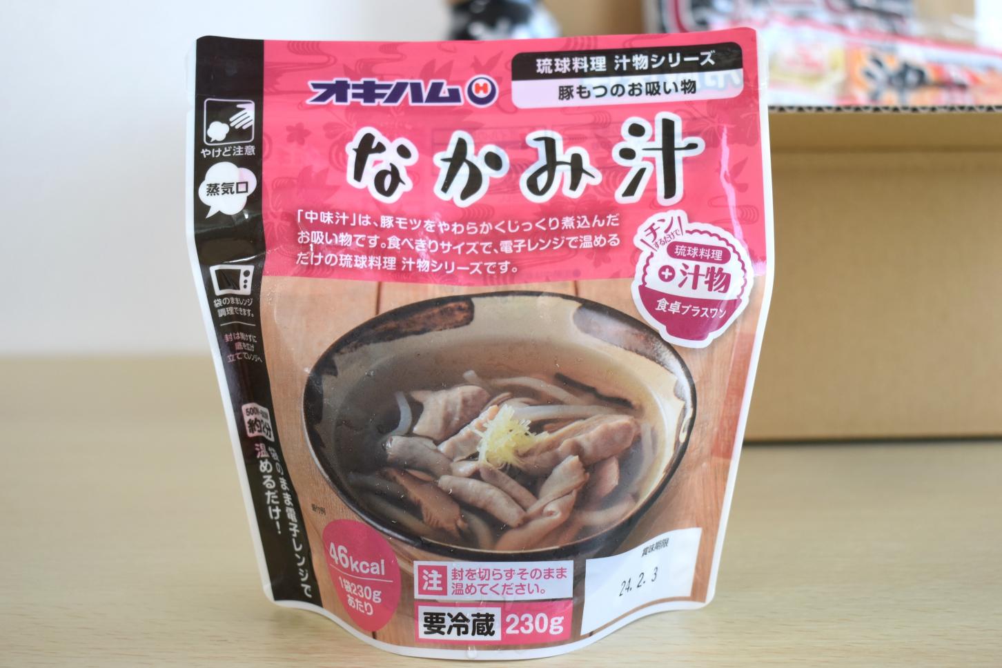 沖縄のお祝いにかかせない「中味汁」は、豚モツを柔らかくじっくり煮込んだお吸い物です。子供から大人まで人気のあるオキハム特製の深い味わいの中味汁です。