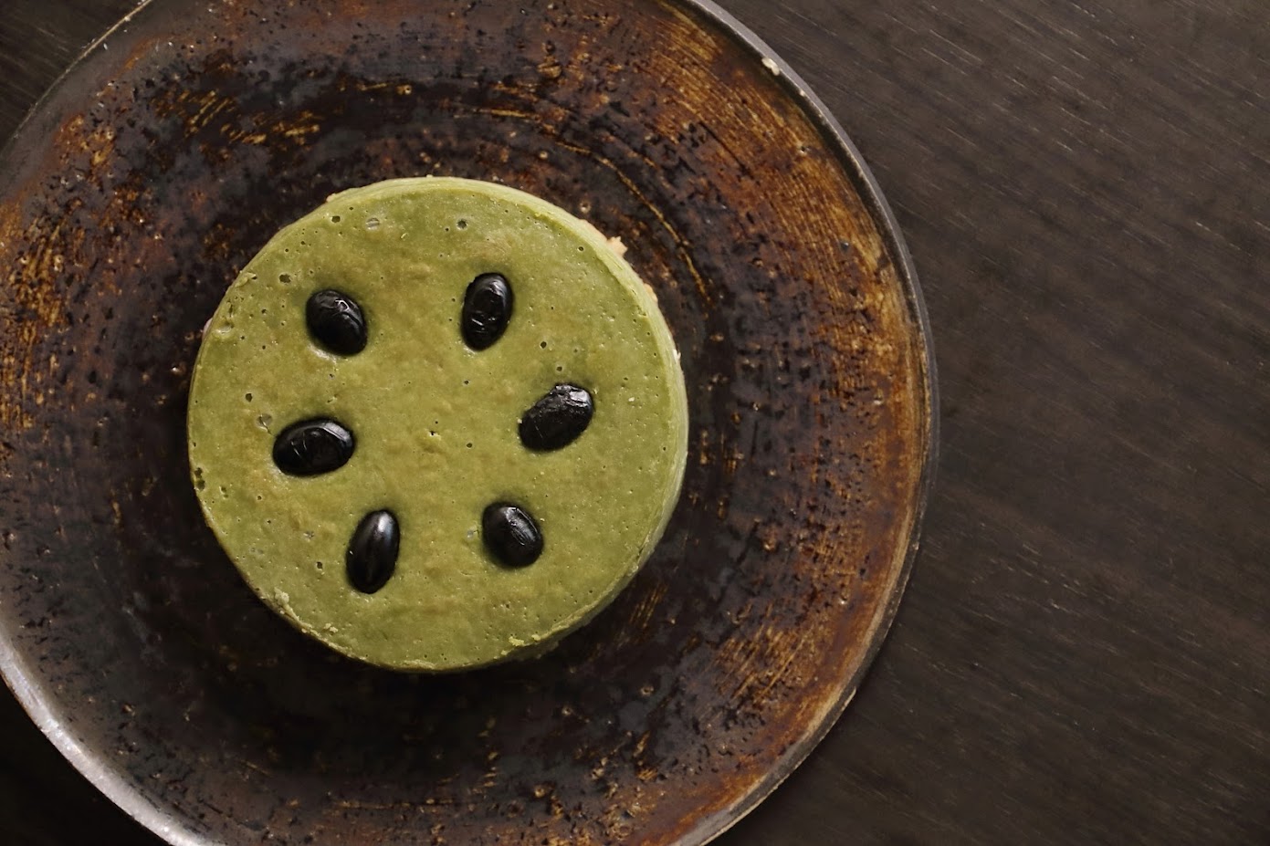 口の中でとろけるクリームチーズと抹茶に、丹波の黒豆がアクセントとなり、和菓子を思わせる味。
