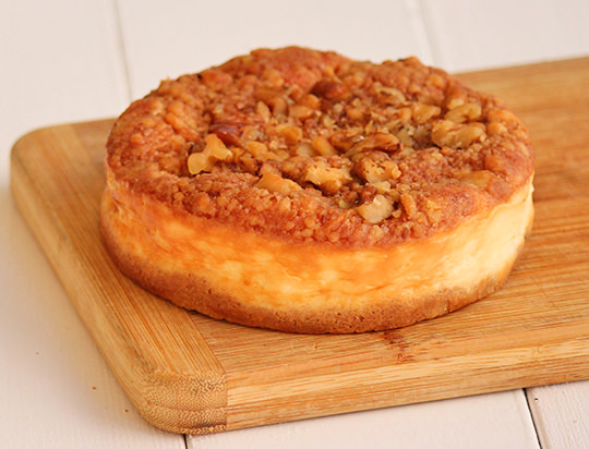 国産林檎をたっぷり使用し、ケーキの上にクルミとシナモン入りのクランブルを使用して香ばしいチーズケーキに仕上げました。
