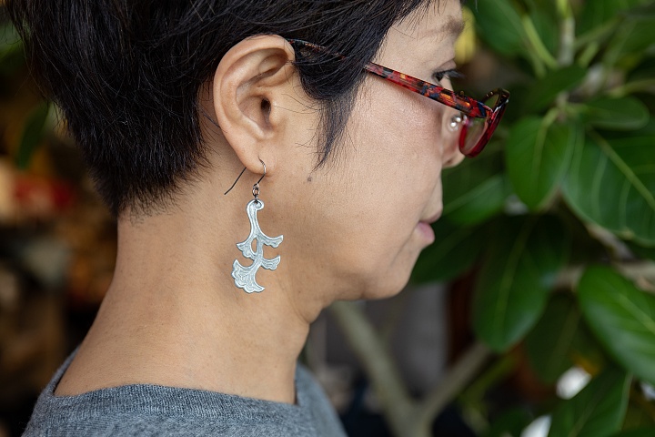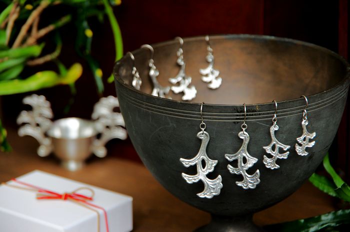 お洒落な文房具や雑貨を扱うセレクトショップ「module」と、沖縄で錫(すず)工芸を制作してる「金細工まつ」のオリジナルコラボ耳飾りです。
