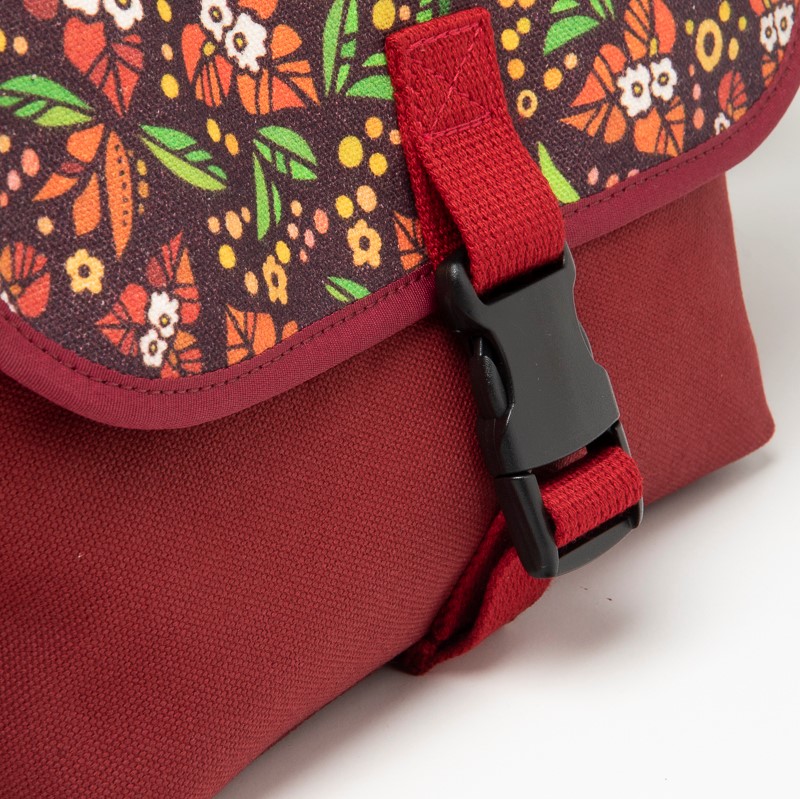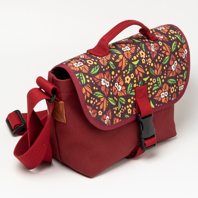 手持ち、肩掛けと2ウェイで使用できるメッセンジャ-バッグ。ちょっとしたお出かけにちょうどいいサイズで、前面のフラップには、沖縄の人気イラストレーター・pokke104(池城由紀乃)さんのオリジナリティあふれる作品がプリントされています。
