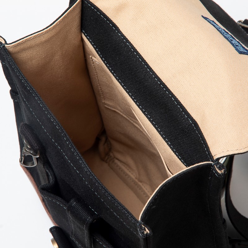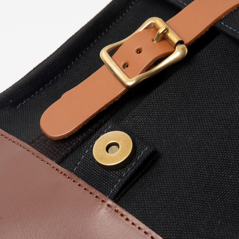 丈夫な帆布生地と牛革を組み合わせて作ったワンショルダー。男性ファンが多く、飽きのこないシンプルなデザインと、使い勝手にこだわった仕様が魅力です。