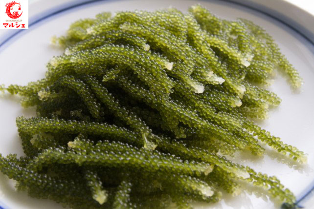 また刺身の付け合わせにも最適でご飯の上にのせて三杯酢をかけた「海ぶどう丼」や、味付けせずに沖縄そばの上に乗せて「海ぶどうそば」として食べることもあります。