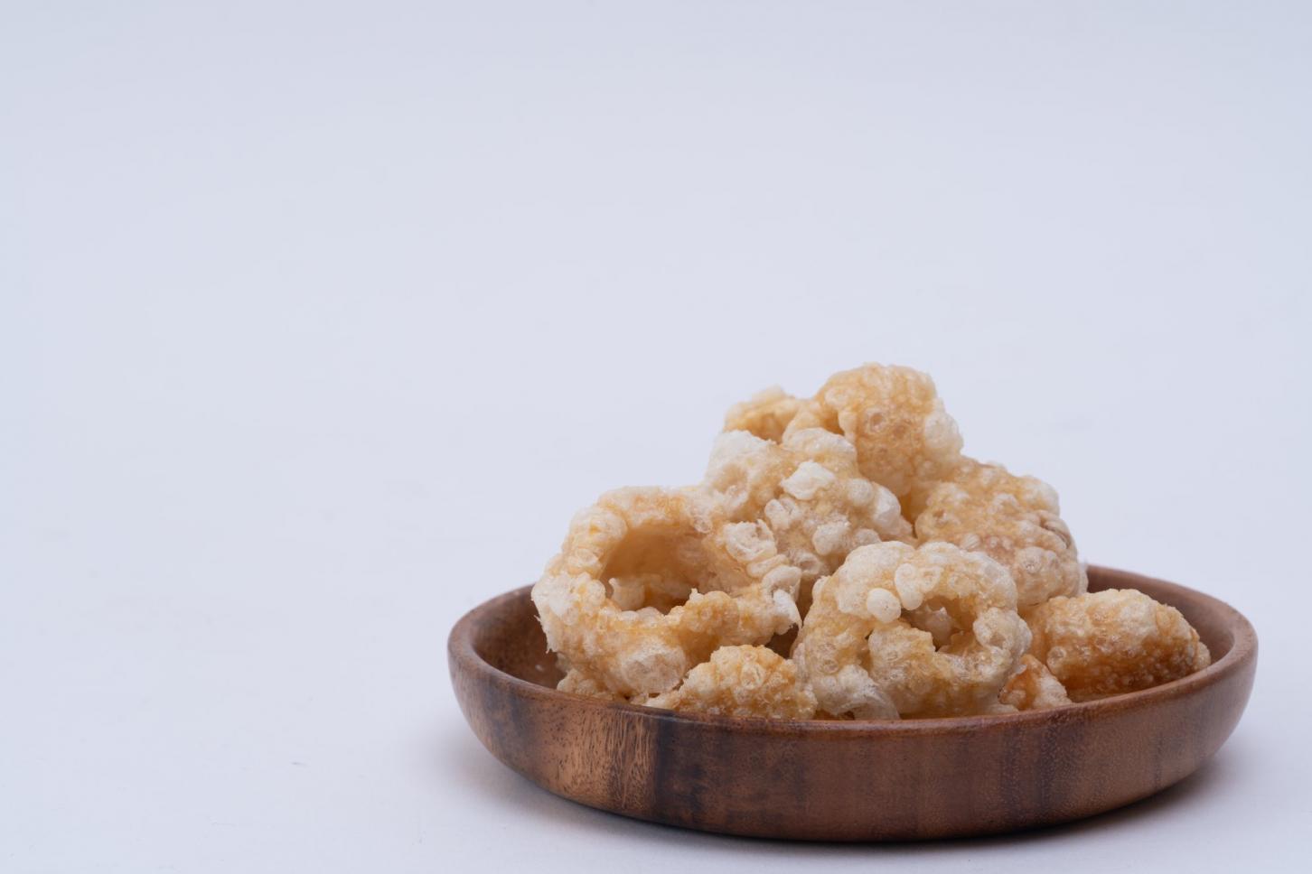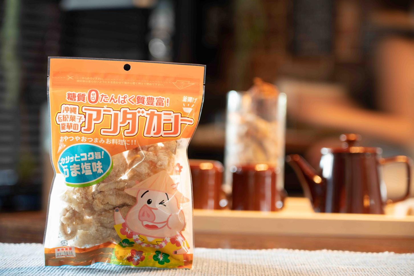 豚の皮を揚げた沖縄の名物菓子。沖縄県産豚皮と背脂を100%使用。