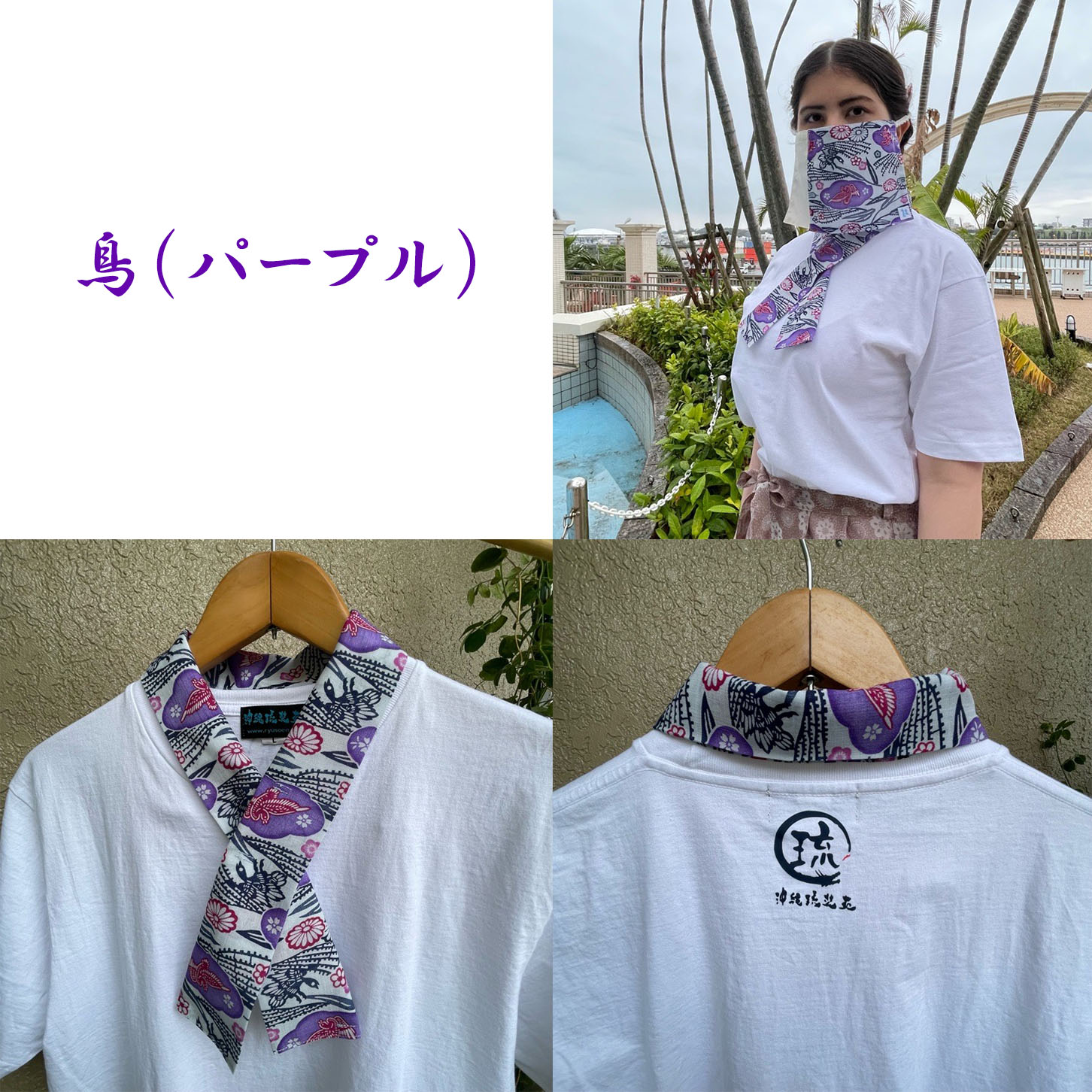 「紅型の古典柄」を使用している「半衿Tシャツ」