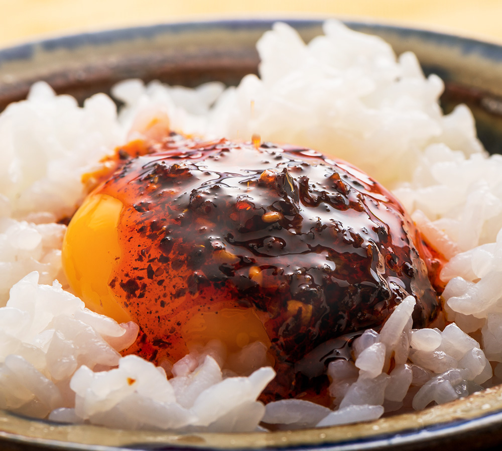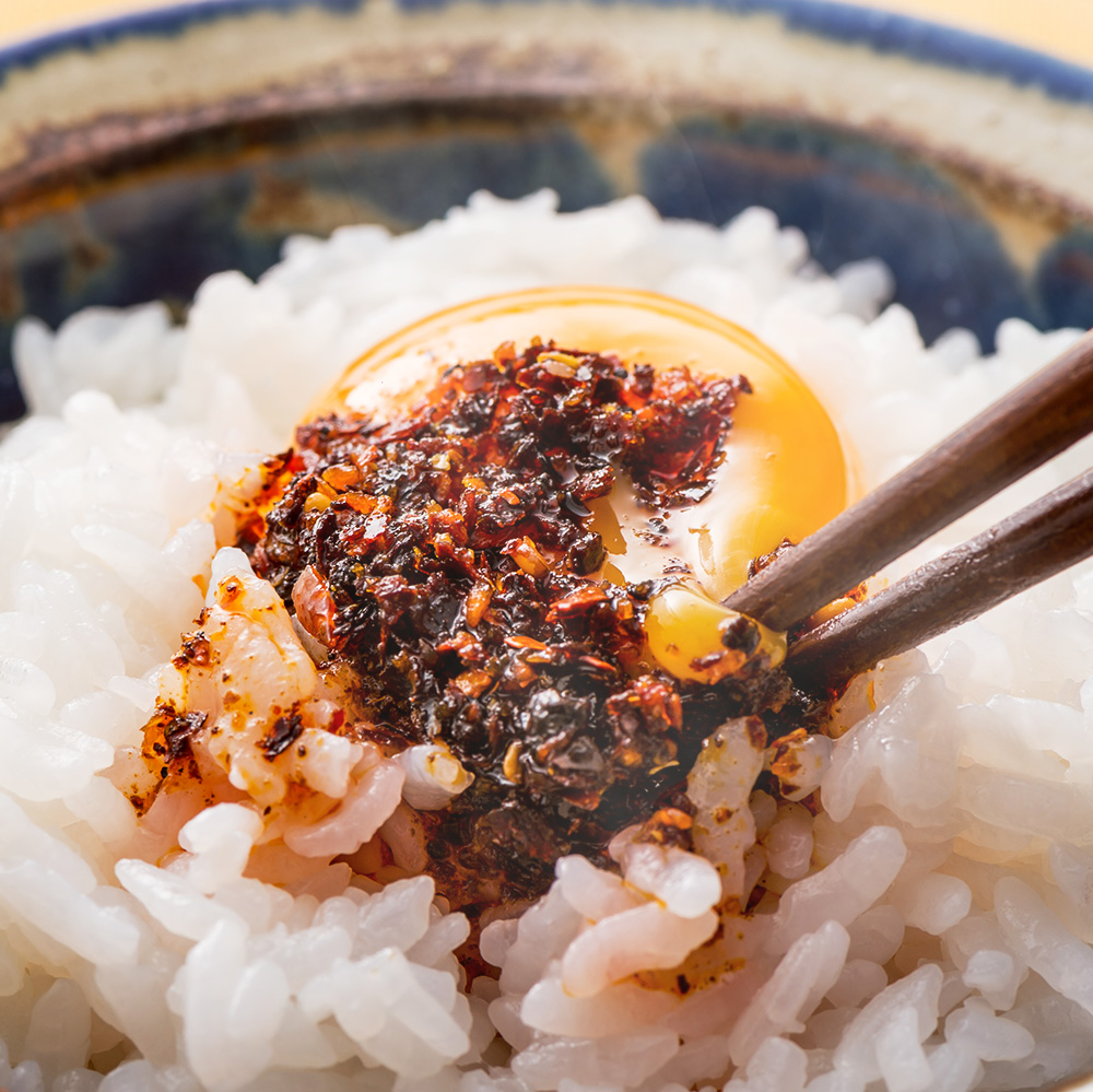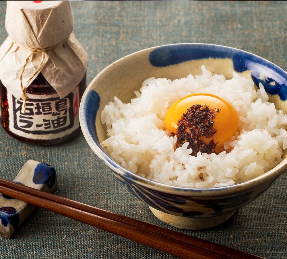 口に含むと香ばしくてまろやかな味わい。さまざまな素材の香りが花ひらきます。卵かけごはんに辺銀食堂の石垣島ラー油をかけたシンプル料理はお子様にも大変人気があります。
