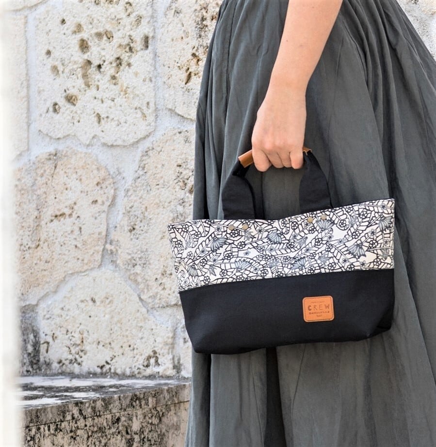 琉球紅型工房ちゅらりのモノトーンびんがたCREW よこトート。