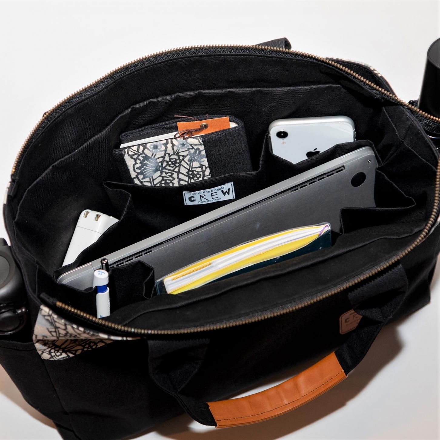 琉球紅型工房ちゅらりのモノトーンびんがたCREW ビジネスバッグ。